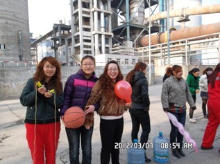 在“三八”國際婦女節(jié)來臨之際,為了表達公司對女職工的節(jié)日祝福,公司工會組織安排游戲活動進行節(jié)日的慶祝。杞鄉(xiāng)大地陽春3月的早晨,還帶有一絲的寒冷,但是,這并不能阻擋大家參加慶?;顒拥臒崆?,8點多,女職工紛紛匯聚到中控樓門前,在工會的組織下,40多名女職工分成三個隊,進行了跳繩、拍籃球、攜帶氣球賽跑等游戲活動,公司各中層管理人員也到場參加慶?;顒樱瑸榕毠に蜕瞎?jié)日的祝福。