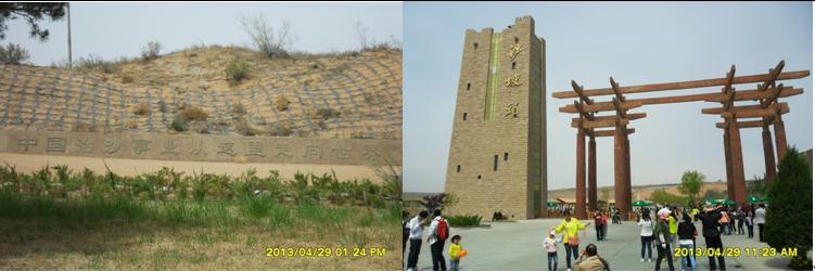 我們?cè)谏称骂^旅游黃河區(qū)(南區(qū))買了門票,隨著人流,進(jìn)入景區(qū)。景區(qū)主大門是一個(gè)四四方方的立柱,加上“井”字形建筑造型構(gòu)成,立柱頂部呈長城烽火臺(tái)垛口造型,立柱右側(cè)上部有三個(gè)鎏金大字“沙坡頭”。 在景區(qū)大門東側(cè),是沙漠博物館,它的頂部呈金字形造型,游客可以免費(fèi)進(jìn)去參觀。