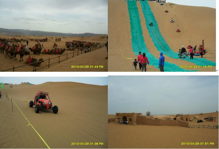 4月29日,吃罷早餐,簡單準(zhǔn)備,我們登上了去中衛(wèi)的中巴,開始了我們的旅程。約一小時(shí)的路程,我們到了中衛(wèi),一下中巴車,馬上就感受到了旅游旺季旅游景點(diǎn)的“熱”。在中衛(wèi)汽車站,沙坡頭旅游公司工作人員得知我們?nèi)ド称骂^玩,便熱情向我們介紹旅游套餐。各種游玩項(xiàng)目價(jià)格令人嗔舌,沙坡頭旅游景區(qū)門票在淡季2元/人,在“五一”小長假這樣的旺季,立刻飆升到90元/人,寧夏籍的游客憑身份證每人可以享受65元優(yōu)惠價(jià),大部分游玩項(xiàng)目價(jià)格都在80元/人。